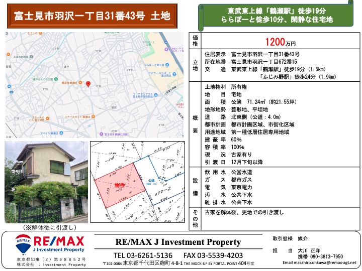 富士見市の住宅用地をご紹介します。第一種低層住居専用地域の閑静な住宅地です。 東武東上線鶴瀬駅から徒 […] -