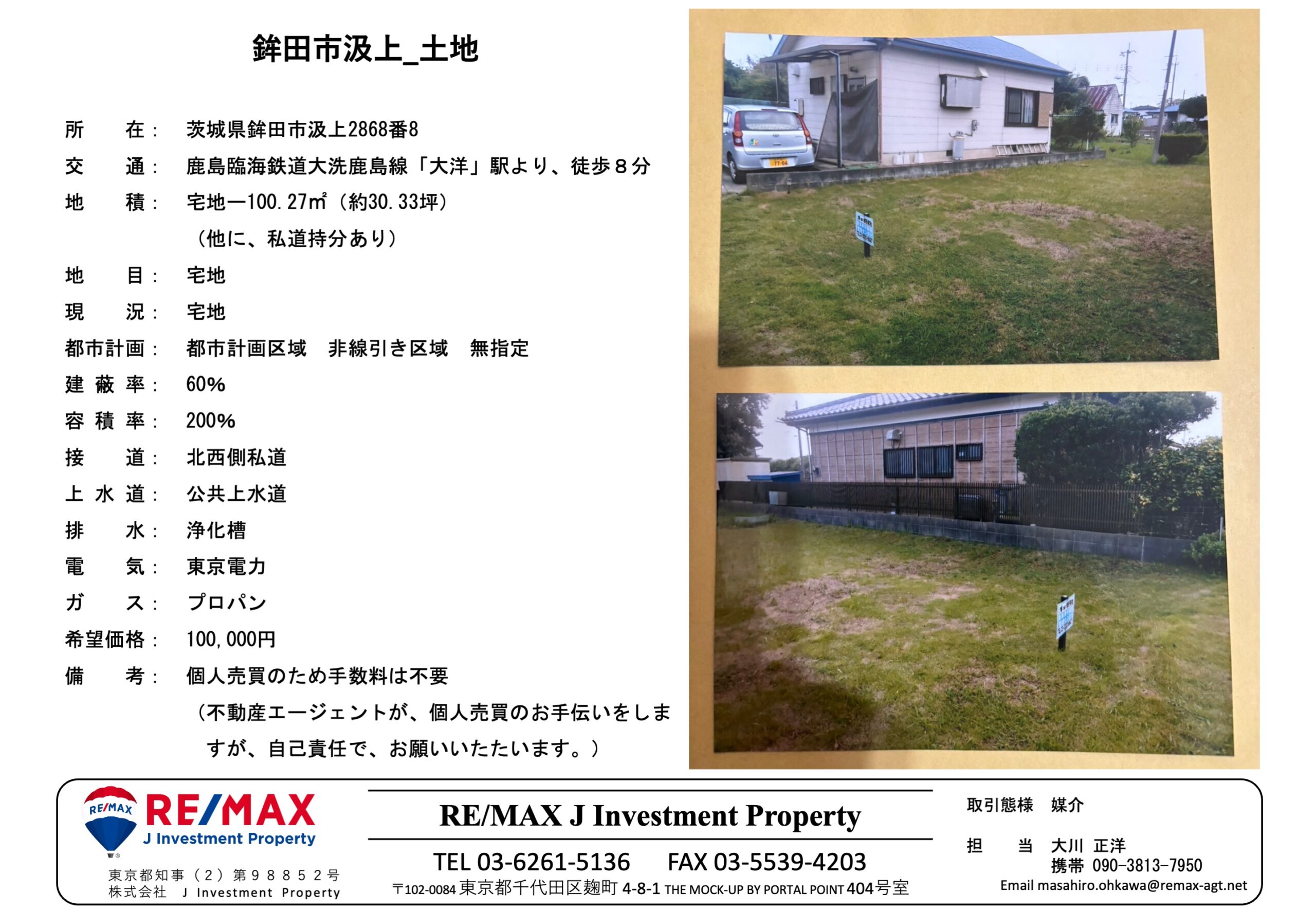 鉾田市、鹿島臨海鉄道大洗鹿島線「大洋」駅徒歩8分の土地をご紹介します。 価格は10万円です。 約30 […] -